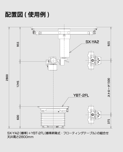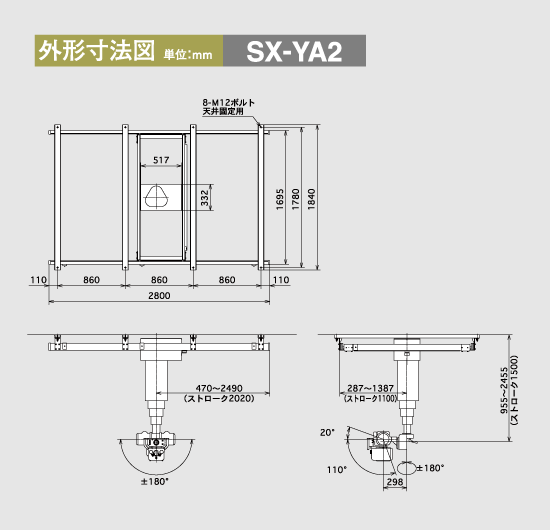 天井走行範囲が広いSX-YA2と一方向移動のSX-YA1 を、設置ス ペースや組合せ撮影台などに応じてお選び頂けます。